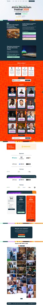 I worked with the team behind the African Blockchain Festival, a flagship pan-African blockchain conference, to design and develop a fully responsive, multi-page WordPress website that communicated the festival’s mission, showcased its speakers, and drove registrations ahead of the November 7–9 event in Kigali.